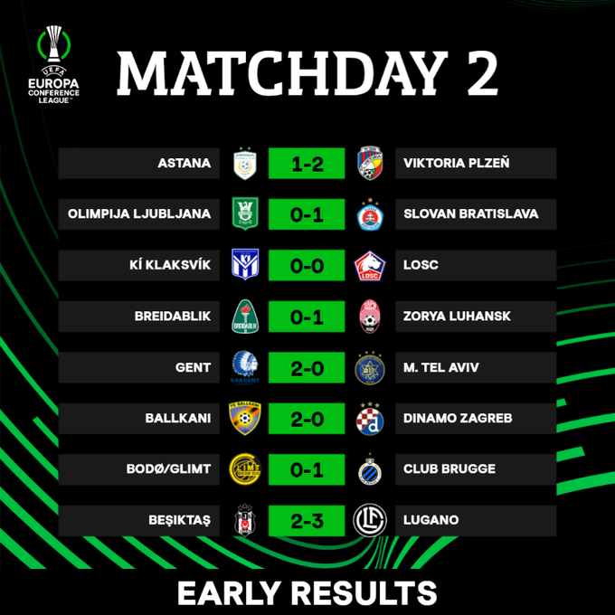 В четверг, 5 октября, в групповом турнире Лиге конференций УЕФА проходят матчи 2-го тура.