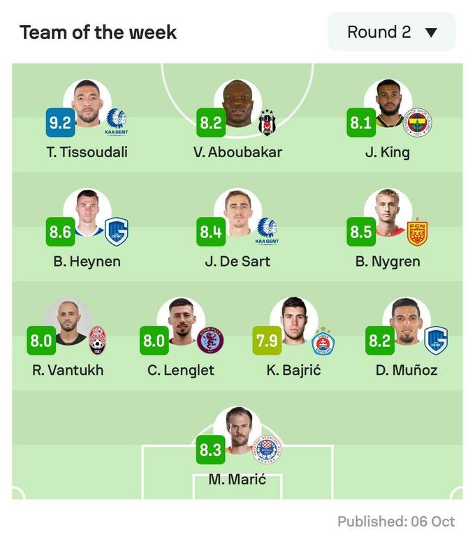 Лучшим игроком недели стал соперник луганчан по группе В – нападающий «Гента» Тарик Тиссудали, оформивший дубль в ворота «Маккаби Тель-Авив».