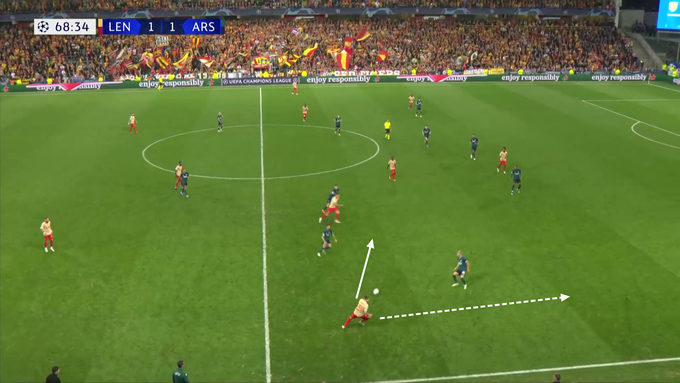 Возьмем матч с «Лансом» в Лиге чемпионов. В этой встрече Зинченко выдал две невероятные передачи. Одна была для Леандро Троссарда, который ворвался в штрафную площадь.