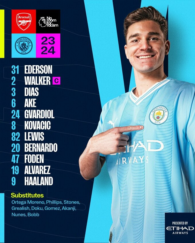 «Манчестер Сити»: Эдерсон – Уокер, Гвардиол, Диаш, Аке – Бернарду, Льюис, Ковачич – Фоден, Холанд, Альварес.