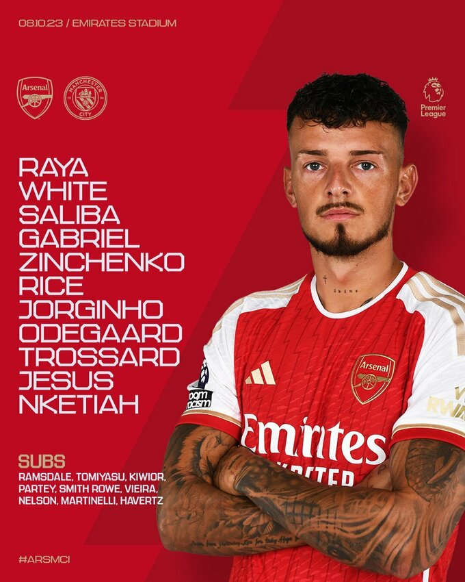 «Арсенал»: Рая – Вайт, Габриэл, Салиба, Зинченко – Эдегор, Жоржиньо, Райс - Троссард, Нкетиа, Жезус