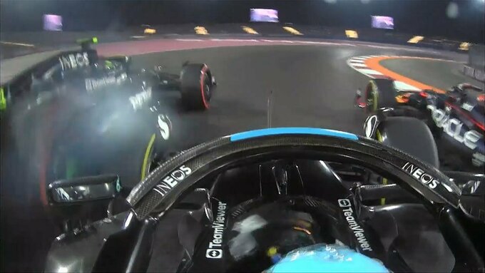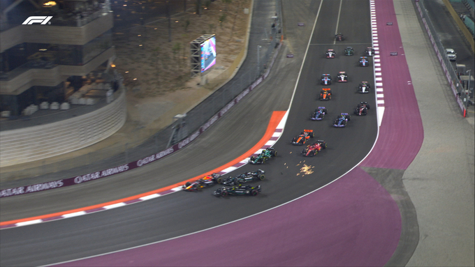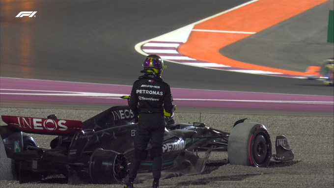На старте гонки Гран-при Катара случилась авария между пилотами Мерседеса Льюисом Хэмилтоном и Джорджем Расселлом, которые стартовали в топ-3.