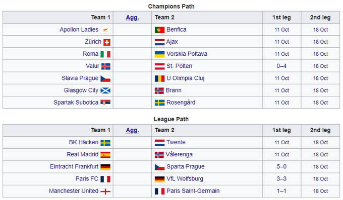 10 октября состоялись 4 матча квалификации женской Лиги чемпионов.