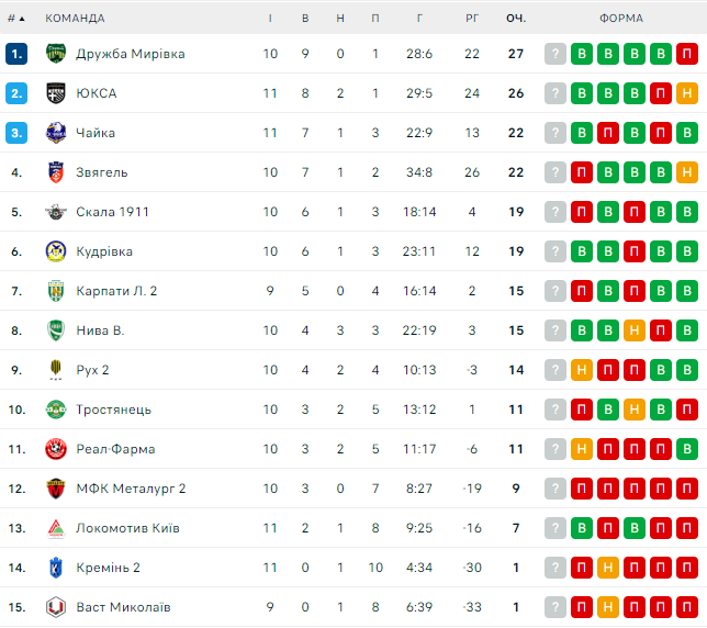 Вторая лига. Турнирная таблица