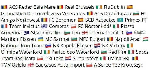 32 команды участниц Европейских лиг соккера (socca)