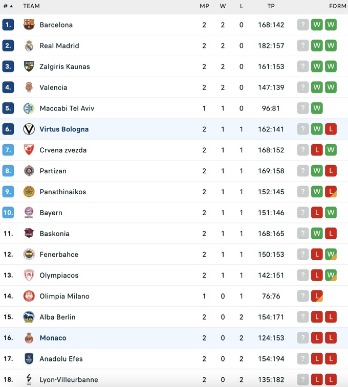 «Жальгирис» на домашнем паркете одолел сербскую «Црвену Звезду». Литовцы в начале четвертой четверти проигрывали в 9 очков, но благодаря успешному рывку смогли вырвать победу со счетом 79:74. «Монако» сенсационно на домашней площадке уступил «Виртус Болонье», итальянцы перебросали французов аж в 24 очка.