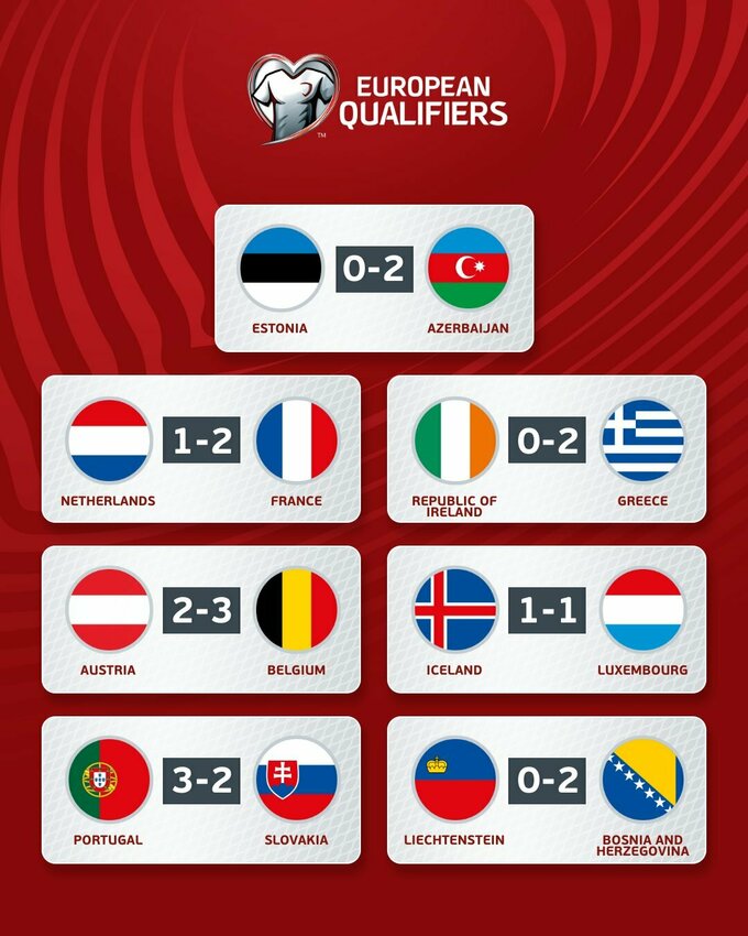 Выиграв свои матчи, Франция, Бельгия и Португалия первыми досрочно вышли на Евро-2024.