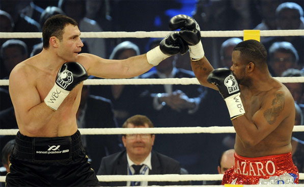 Впрочем, в целом, бой проходил под полным перевесом нашего боксера, после 4 раунда было объявлено о том, что он ведет по очкам, а в следующем раунде у Гомеса еще и образовалось рассечение у правого глаза. Ну а перевес Виталия с каждым раундом выглядел все солиднее. В 6 раунде Гомес впервые упал, правда, потеряв равновесие. В следующем раунде ему уже помог упасть Кличко. Правый, левый и кубинец путается в канатах. Можно добивать, ведь до конца раунда еще долго, но Гомесу удалось продержаться, хотя Виталий и старательного гонял его до самого гонга.