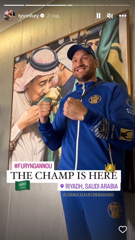 35-летний британский боксер выложил в сторис инстаграм соответствующее фото из Эр-Рияда.