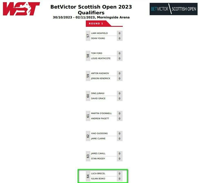 Жеребьевка Scottish Open 2023 (одна из секций)
