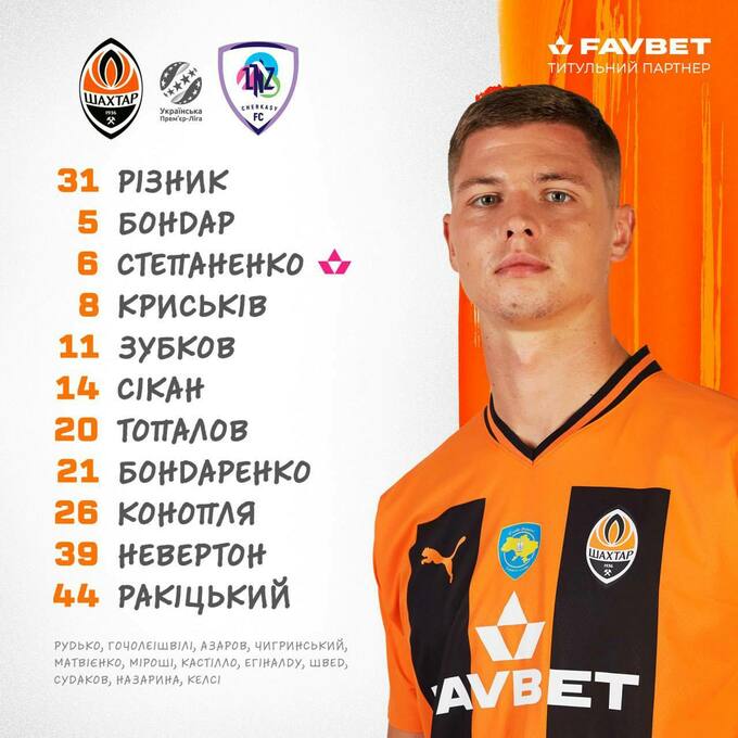 «Шахтер»: Ризнык, Топалов, Ракицкий, Бондарь, Конопля, Степаненко, Бондаренко, Крыськив, Невертон, Зубков, Сикан.