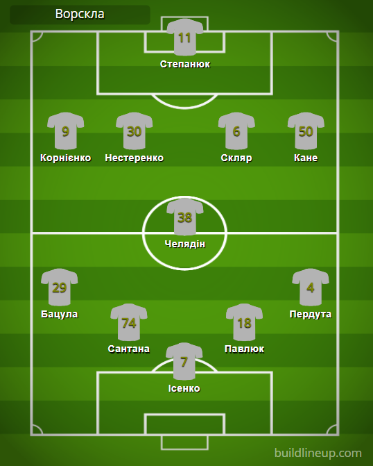 «Ворскла»: Исенко – Бацула, Сантана (Хрипчук, 63), Павлюк, Пердута – Челядин – Корниенко (Фелипе, 63), Нестеренко (Черныш, 78), Скляр, Кане – Степанюк.