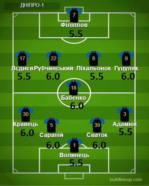 Замены Днепра-1: Маркос Андре - 5,5, Танчик - 5,0, Каплиенко - б/о.