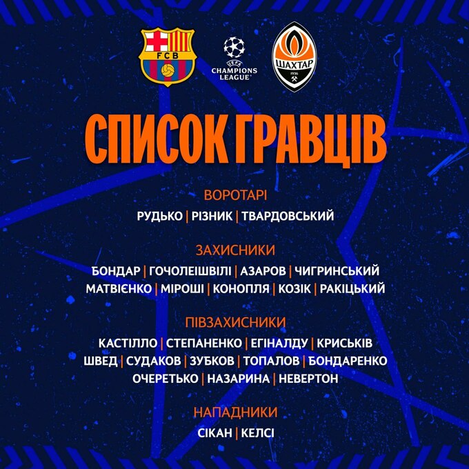 26 игроков в заявке. Шахтер отправился на матч с Барселоной