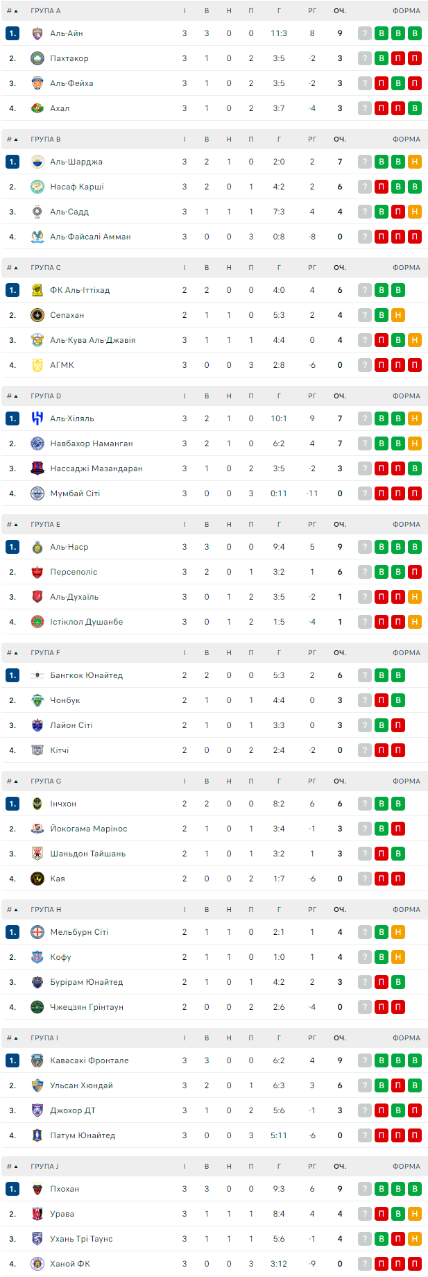 Турнирные таблицы