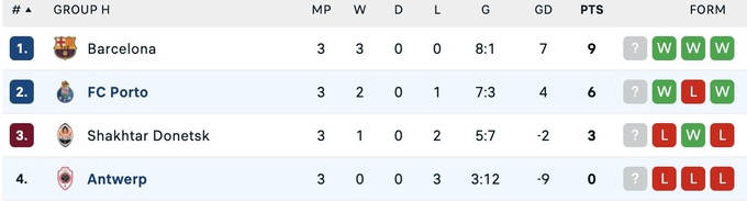 Накануне в противостоянии группы Н «Шахтер» уступил на выезде «Барселоне», которая продолжает возглавлять группу с 9 очками. Далее следует «Порту» с 6 очками, «Шахтер» с 3 и «Антверпен», который очков не набирал.