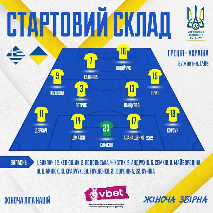 Сегодня, 27 октября, женская сборная Украины в матче третьего тура Лиги наций УЕФА среди женщин в гостях сыграет с национальной командой Греции. Начало матча – в 17:00 по киевскому времени. Сейчас команды занимают соответственно 4-е и 3-е места в своей отборочной группе.