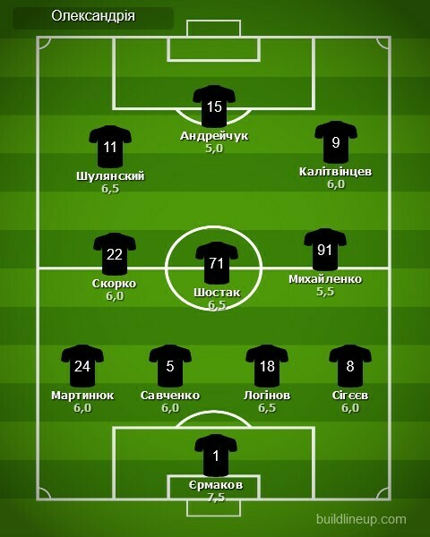Заміни «Олександрії»: Погорілий – 5,5; Джевані – 5,5; Смирний – 5,5; Білошевський – 5,5; Кулаковський
