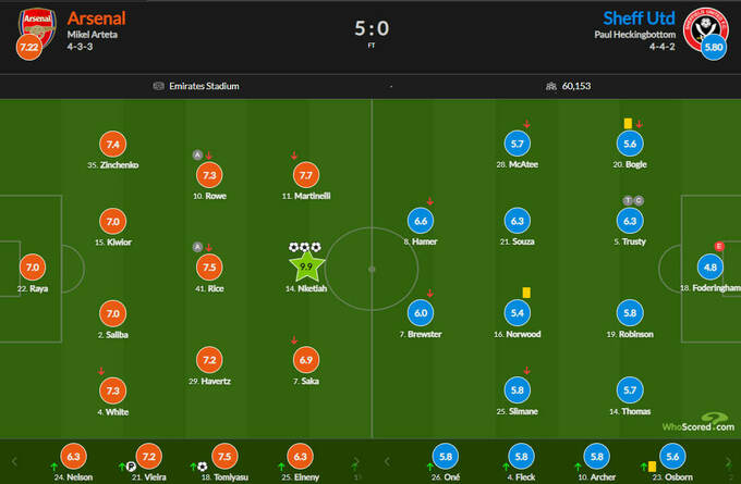 Оценки WHoScored за матч Арсенал – Шеффилд Юнайтед – 5:0