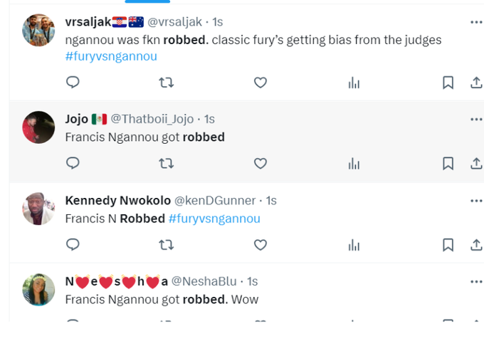 Чемпион мира по версии WBC в супертяжелом весе Тайсон Фьюри из Великобритании (33–0–1, 24 KO) в Эр-Рияде (Саудовская Аравия) по очкам победил экс-чемпиона UFC из Камеруна Франсиса Нганну.