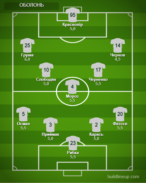 Замены Оболони: Нагиев - 5,5, Прокопенко - 5,5, Суханов - 5,5, Тарануха - 5,0, Косовский - б/о.