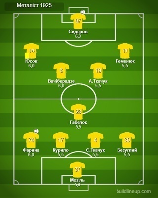 «Металлист 1925»: Мозиль, Безуглый, Е.Ткачук, Курило, Фарина, Габелок, Ременюк (Дмитренко, 64), А.Ткачук (Бичек, 64), Вачиберадзе, Юсов (Чирук, 87), Сидоров.