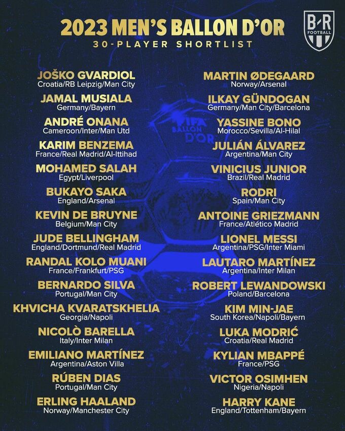 Фаворитами на получение Золотого мяча считаются Лионель Месси (Аргентина, ПСЖ / Интер Майами), Эрлинг Холанд (Норвегия, Манчестер Сити), Килиан Мбаппе (Франция, ПСЖ).