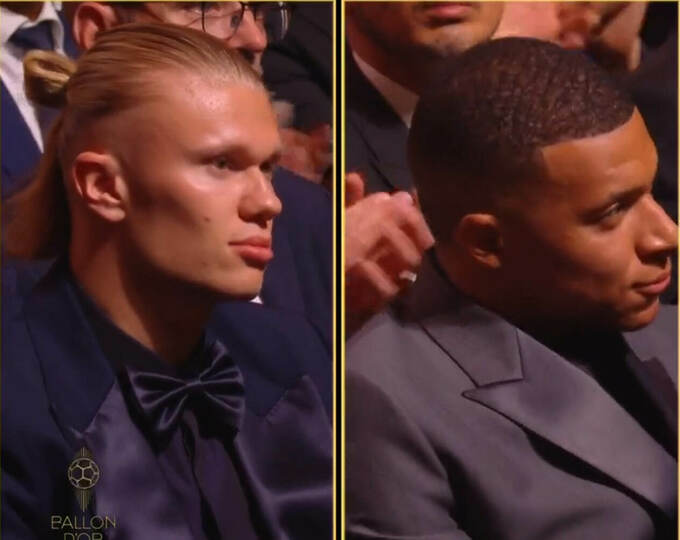 Операторы засняли реакцию нападающего Холанда и Мбаппе во время того, как Месси был объявлен лучшим игроком года.