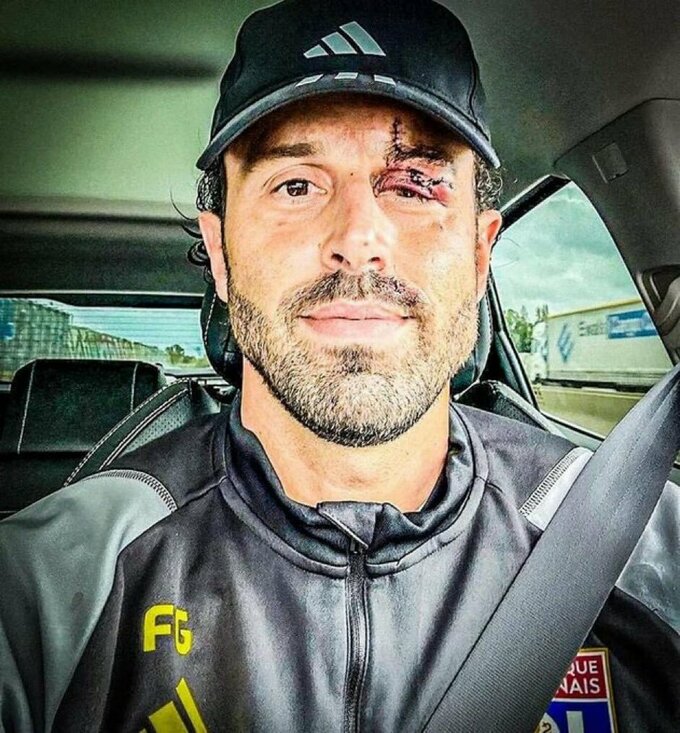 Главный тренер «Лиона» Фабио Гроссо показал, как выглядит после операции, во время которой ему наложили 13 швов на лицо.