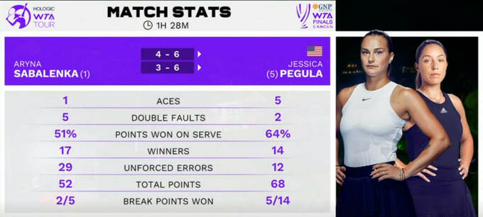 Simply Sensational 🙌@JPegula puts together a brilliant display to defeat World No. 1 Sabalenka 6-4, 6-3#WTAFinals pic.twitter.com/8FjRAEw49q
