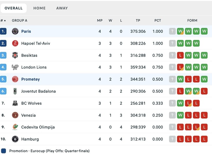 В активе «Прометея» по две победы и поражение в четырех стартовых турах. «Париж», напротив, выиграл все свои матчи и единолично возглавляет турнирную таблицу группы А. Но команда Ронена Гинзбурга уже не раз показывала, что может справиться с любым фаворитом. Поэтому победитель матча в Риге еще даже близко не известен, несмотря на котировки букмекеров.