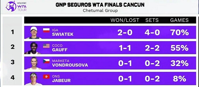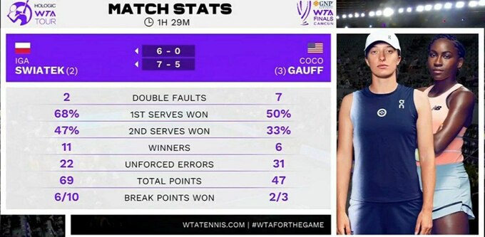 A statement victory 💪@iga_swiatek gets past Gauff and is still unbeaten in the Chetumal Group!#WTAFinals pic.twitter.com/z9i7I1xFk9