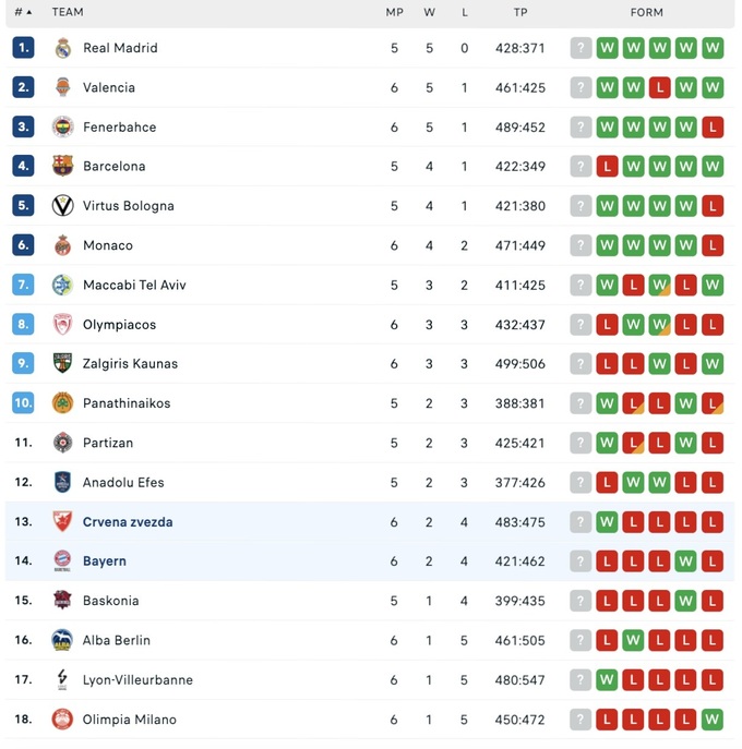 Начался игровой день с победы «Црвены Звезды» в матче против мюнхенской «Баварии». «Фенербахче» на домашней площадке вырвал победу у греческого чемпиона «Олимпиакосa», а «АСВЕЛ» неожиданно выиграл на выезде у «Жальгириса».