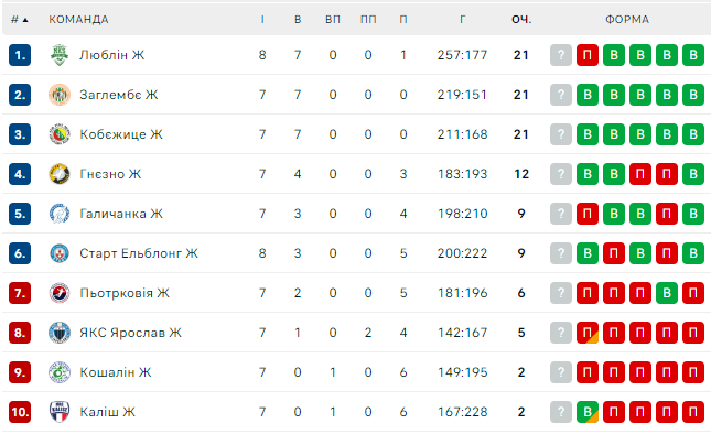Галичанка занимает 5-е место среди 10 команд, имея 9 очков (3 победы и 4 поражения).
