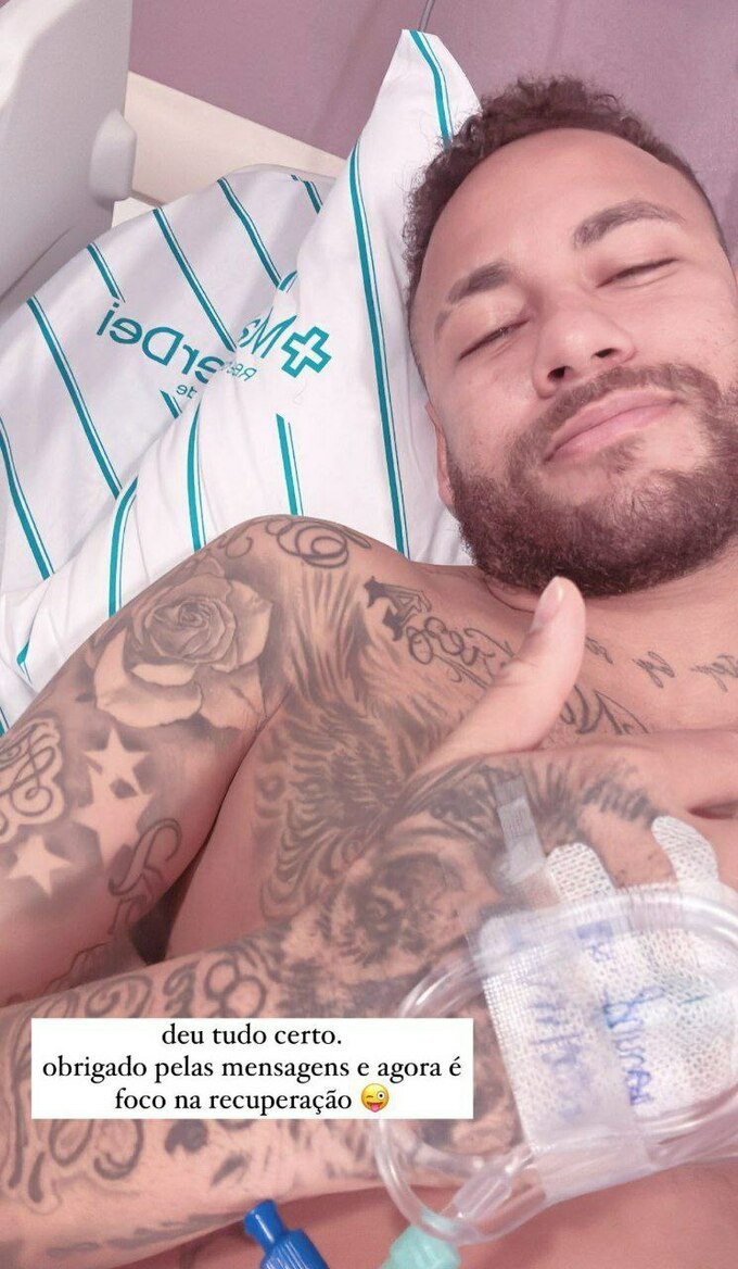«Всё получилось. Спасибо за все сообщения. Теперь сосредоточусь на восстановлении», – написал Неймар в Instagram, прикрепив фото из больницы.
