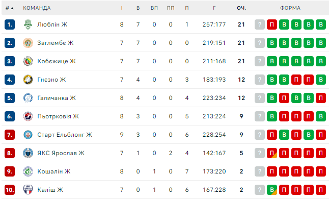 Галичанка занимает 5-е место среди 10 команд, имея 12 очков (4 победы и 4 поражения).