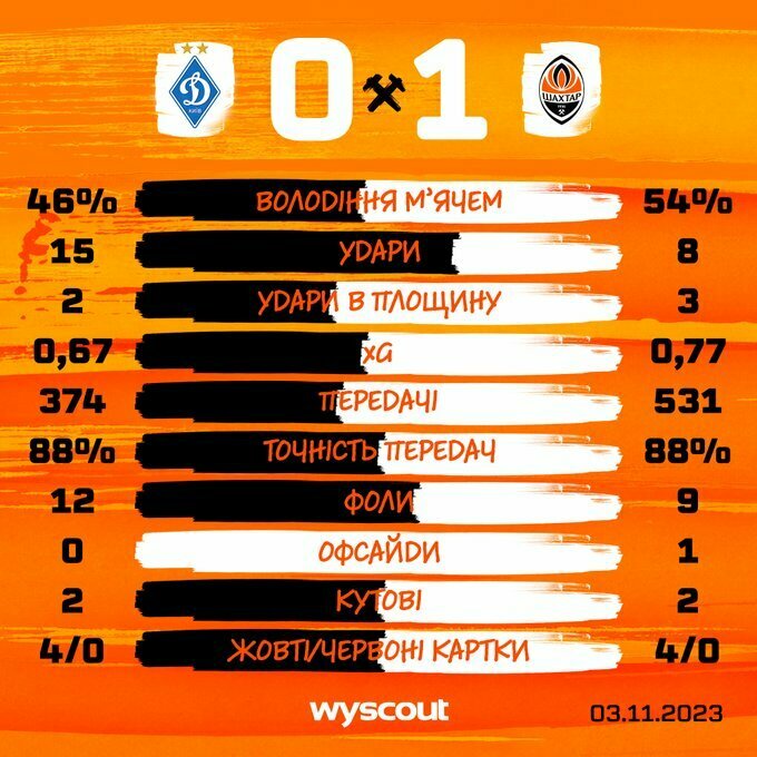 Статистика матча Динамо – Шахтер. Одинаковая точность передач, близкий xG