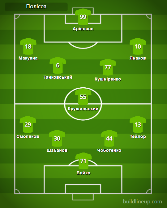 «Полесье»: Бойко – Смоляков, Шабанов, Чоботенко, Тейлор – Танковский, Крушинский (Огиря, 75), Кушниренко – Макуана, Ариелсон (Шастал, 83), Янаков (Козак, 46).