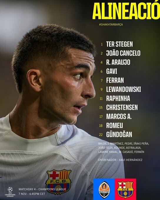 Барселона: тер Штеген, Канселу, Араухо, Кристенсен, Алонсо, Гюндоган, Ромеу, Рафинья, Гави, Ферран, Левандовски