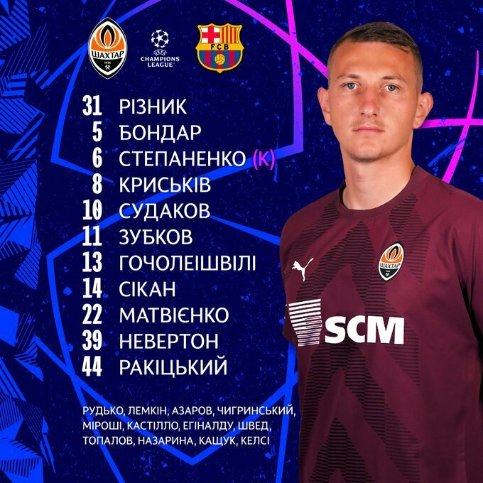 Выбор Пушича. Состав Шахтера на матч против Барселоны