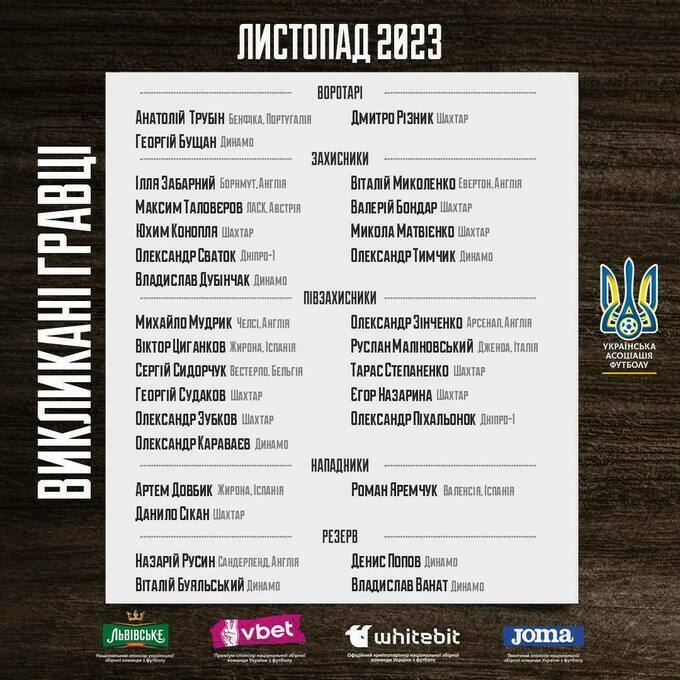 Главный тренер сборной Украины Сергей Ребров огласил список футболистов, вызванных на последний и решающий поединок отбора на Евро-2024 – против национальной команды Италии.