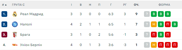 Ситуация в группе: Реал (9 и игра в запасе), Наполи (7), Брага (3 и игра в запасе), Унион Берлин (1).