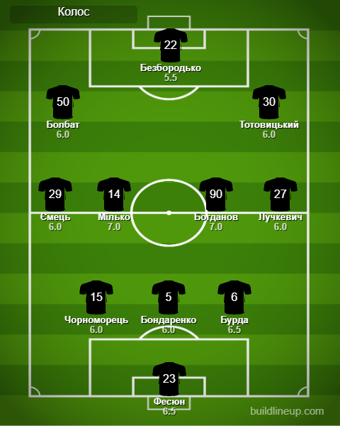 «Колос»: Фесюн, Емец, Бурда, Бондаренко, Черноморец, Лучкевич, Милько (Ориховский, 85), Богданов (Демченко, 71), Тотовицкий (Салабай, 85), Безбородко (Ильин, 65), Болбат (Мякушко, 65).