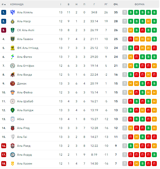 Аль-Иттихад идет на 5-м месте (24 очки), а лидирует Аль-Хиляль (35), опережая Аль-Наср (28), Аль-Ахли (26) и Аль-Таавун (25).