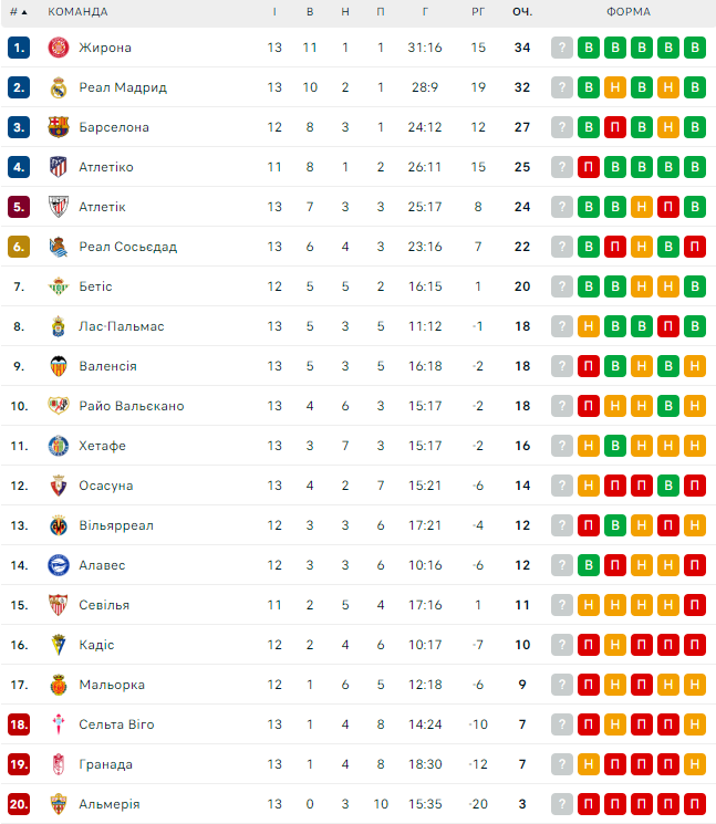 11 ноября состоялись несколько матчей 13-го тура чемпионата Испании