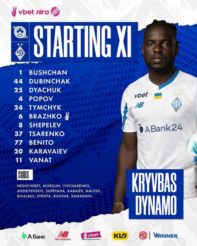 «Динамо»: Бущан – Попов, Бражко, Шепелев, Ванат, Караваев, Тымчик, Дячук, Царенко, Дубинчак, Бенито.