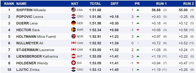 Компанию Шиффрин на подиуме составили хорватка Леона Попович и немка Лена Дюрр, которая вчера была второй.