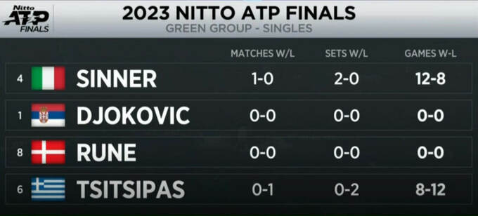 В Зеленой группе Синнер и Циципас играют вместе с Новаком Джоковичем и Хольгером Руне.