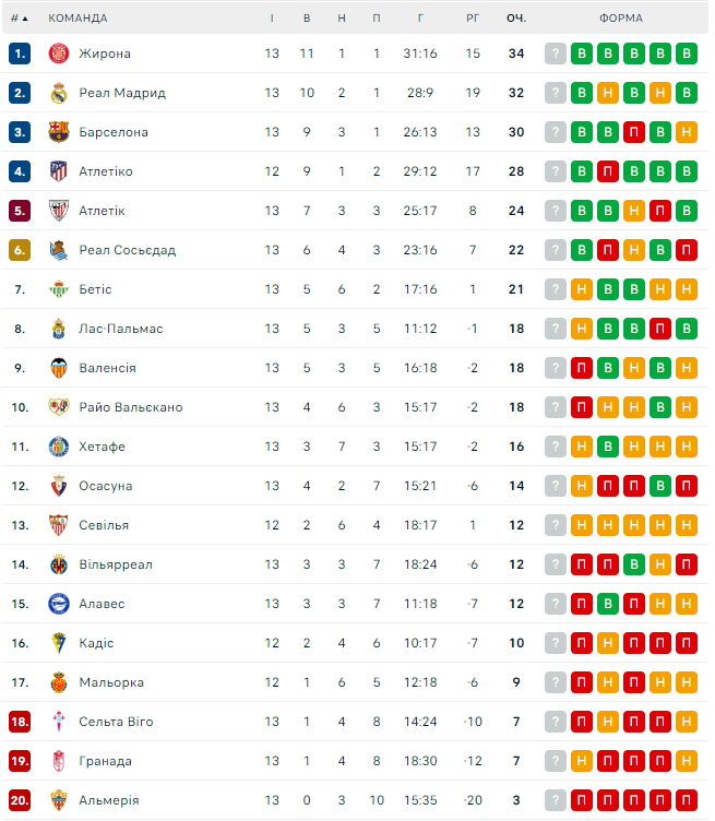 «Бетис» набрал 21 очко и занимает 7-е место, «Севилья» с 12 пунктами находится на 13-й позиции.