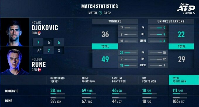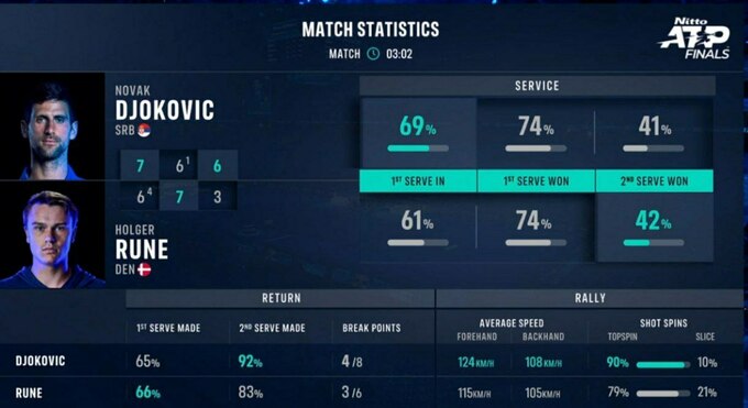 19-я победа подряд и 2-я над Руне. Джокович успешно стартовал на ATP Finals